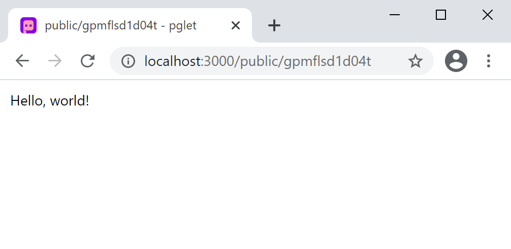 In this example, the page URL is a random string, because we didn't specify it in pglet.page() call. Try changing it to pglet.page('hello').